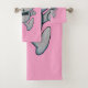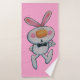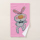 Este conjunto de toallas de baño con toalla de baño, toalla de mano y toalla de baño son de color rosa brillante, con un divertido conejo blanco con nariz naranja que da un signo de aumento de los pulgares con corbata negra. Compra todo el conjunto o individualmente.