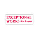 Este motivante diseño de sellos de caucho incluye el inspirador mensaje "¡TRABAJO EXCEPCIONAL!" y un nombre de tutor personalizado. Podría ser utilizado por un profesor, educador o tutor al marcar las asignaciones, para indicar que un estudiante ha tenido un buen desempeño.