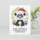 "Téngase un pequeño oso Navidad" (una alegre Navidad) dicho/cita, canción de villancicos de Navidad. Con un osito Panda bebé de dibujos animados usando un decorado de Santa Claus y luces de Navidad, rojo, verde, amarillo y azul. Si no te gusta la divertida frase de Navidad, puedes cambiarla a lo que quieras. El interior de la tarjeta está listo para que agregues tu propio mensaje personalizado.