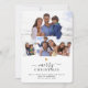 Tarjeta de vacaciones de foto familiar minimalista en un diseño de tipografía de escritura moderna que dice Feliz Navidad debajo de un corazón dorado impreso con tu mensaje personalizado y tus fotos favoritas enmarcadas en un divertido y alegre collage de fotos. Brinda alegría a tus seres queridos con esta papelería linda, simple, trendy y discreta. La parte trasera presenta puntos dorados impresos en tonos tierra ricos.