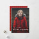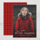 Una tarjeta de Navidad con foto divertida con tipografía simple define un saludo travieso en la parte delantera. La parte trasera tiene un patrón de cuadros. Haga clic en el botón de edición para personalizar este diseño.