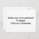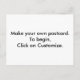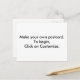 Diseñar sus propias postales personalizados en línea. Haga clic en Personalizar para comenzar. Haga clic en Agregar imagen para cargar una imagen, imagen de su equipo. A continuación, puede hacer clic en la imagen después de que se cargue para moverla y redimensionarla. Puede eliminar el texto que se muestra con el espacio entre espacios en el cuadro de texto o escribir texto nuevo. Después de escribir el texto, puede elegir el estilo, el tamaño y el color de la letra (f). Gracias por comprar CherylsArt en Zazzle.