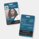 Un diseño sencillo pero llamativo en azul, blanco y negro con plantillas para tu logotipo; una foto de su empleado; datos relativos a su empresa y a la fecha de empleo, grupo sanguíneo y fecha de caducidad de la tarjeta. Personalice la plantilla para que se ajuste a sus necesidades y cambie el color de fondo a cualquiera de sus opciones personales.