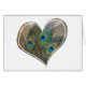 Diseño divertido de plumas de pavo real con doble corazón y plumas de pavo real sobre fondo de roca marrón en un diseño en forma de corazón. Gran idea de regalo.