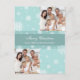 Feliz personalizado navideño postales de doble foto en verde azulado azul y blanco navidades modernos, patrón de copos de nieve, elegante y simple. Desee a su familia y amigos lo mejor de esta temporada de vacaciones con esta divertida postal.