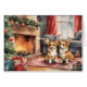 En la parte frontal de esta tarjeta de vacaciones, dos pequeños perros Pembroke Welsh Corgi se sientan junto a una chimenea encendida. Un árbol decorado con paquetes de regalo brillantemente envueltos está al lado de la chimenea, y se puede ver una tormenta invernal a través de la ventana. Todo el texto interior se personaliza fácilmente, para que puedas hacer que diga lo que te gustaría. ¡Lindo! Ver más imágenes de Corgi, junto con docenas de otros productos de razas de perros, en Dog Village.