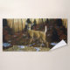 La presencia de una paloma blanca te sorprende. Las hojas de otoño y un ligero desempolvamiento de la nieve indican que es a finales del otoño en el bosque. Obra de arte realista creada a partir de una pintura al óleo original del artista de la fauna y la flora silvestres Crista S. Forest.