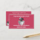 Un cachorro muy popular en el diseño de un suelo. Consiga que su negocio se dé cuenta con esta tarjeta de negocios de color rosado. La pipa tiene un arco azul y burbujas en su baño. Utilice la plantilla sencilla para personalizar de todos los detalles de su negocio. Ponlos en su mostrador y viéndolos ir. La forma más económica de comercializar su negocio.Use la parte posterior para configurar la siguiente fecha de cita.