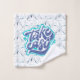 Toalla de baño en una acuarela de playa y un diseño de "Tómalo con calma". Las toallas y las toallas son un patrón de dólares de arena y el paño de lavado tiene un diseño tipográfico "fácil".