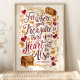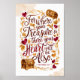 Inspira reflexión y crecimiento espiritual con esta hermosa versión de Mateo 6:21. La elegante letra, adornada con corazones de acuarela y cofres del tesoro, da vida a la sabiduría eterna de este versículo. Perfecto para agregar un toque de fe y contemplación a la decoración de tu hogar o oficina.