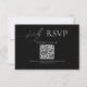 El amor moderno merece una tarjeta RSVP moderna. Esta elegante tarjeta RSVP de boda negra presenta un diseño minimalista limpio con tipografía blanca intemporal y código QR. Ideal para los temas bodas contemporáneos, románticos o de gama alta, el diseño combina simplicidad con calidez emocional. Personalizable para sus nombres, fecha, lugar y todos los detalles clave. Perfecto para las parejas que desean una invitación limpia y elegante que marque el tono para un día significativo e inolvidable. Póngalo en pareja con nuestras tarjetas Save the Date, invitaciones, sellos para sobres y más en la suite de coordinación completa.