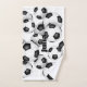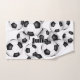 Esta divertida toalla de mano con temática de fútbol puede ser personalizada con el nombre del atleta encima de la imagen de un grupo de balones de fútbol blanco y negro de tamaño variado - de katz_d_zynes