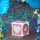 Donut rosado con caja de favores de rociadores