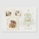 Fun y caprichoso saludo de vacaciones con tres marcos de fotos cuadradas de doodle dibujados en línea dorada, árbol de navidad de acuarela con oro personalizado.