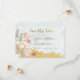 Este bonito diseño está decorado con flores de color rosa, blanco, azul suave y verde suave sobre un suave fondo de agua verde. Los bordes parecen estar sumergidos en oro falso. Esta tarjeta forma parte de la suite de tarjetas Gold Dipped Floral Boda creada por Simply Farmhouse Press.