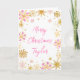 Esta elegante y glamorosa tarjeta de Navidades acuarelas puede ser personalizada con un nombre o título, como mamá, hija, nieta, sobrina, amiga, etc. Cuenta con copos de nieve color agua rosa y oro falso purpurina y destellos sobre un fondo blanco. El texto combina el guión manuscrito y las fuentes sans serif modernas para un aspecto elegante y sofisticado. Gráficos de www.etsy.com/uk/shop/SunflowerDayLove