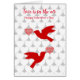 Dos pájaros amorosos de color rojo volando juntos. El amor está en el aire con seguridad cuando hablas de los amorosos pájaros que han inspirado a poetas y a todos los demás. Este pequeño animal de plumas representa el sentimiento del El día de San Valentín. Este diseño muestra la silueta de dos pájaros que llevan un corazón en su pico sobre un fondo gris de corazones redondos blancos con forma de patrón. Utilice este producto cuando sienta la necesidad de enviar un mensaje de amor a su novia o cualquier ocasión o evento romántico o para celebrar al El día de San Valentín. El texto se puede personalizar.