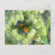 Postal con foto de dos ladybirds / ladybugs refugiándose por la noche en la cima de una cabeza de flor silvestre