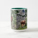Dos dulces amigos caballos pastan en un bosque, se presentan en esta taza de bebida de calidad. ¡El diseño perfecto para los amantes del caballo!