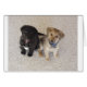 dos adorables cachorros labradores - ambos muy curiosos mirando algo