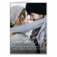 Esta moderna tarjeta Save the Date comienza con la foto de tu pareja. Save the Date se escribe en una gran caligrafía blanca elegante. Dos líneas de texto a continuación le permiten personalizar su mensaje. Una superposición especial garantiza que el texto en blanco aparecerá sin importar la foto. Dentro de la tarjeta hay otra foto y un mensaje más largo para personalizar.
