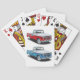 Un par de camionetas juntas. Uno rojo y otro azul. Este diseño se ve realmente efectivo en esta baraja de cartas