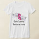 Dos camisetas bodas del Corazón, podaderas, camisetas de tanque, tazas, tarjetas, pegatinas, franqueo, cadenas de claves, imanes y otras prendas de vestir y regalos con dos palomas, corazones rosados y texto que dice "¡Dos corazones se convierten en uno"!