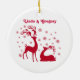 Dos ciervos en amor y el ornamento del compromiso del navidad de los copos de nieve