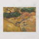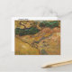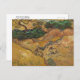 Postal de arte fino con la pintura de Vincent van Gogh (1853-1890), titulada Campo con dos conejos (1889). Bunnies pastoreando en el campo por árboles, arbustos y un arroyo.