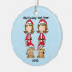 ¡Esto será un placer para siempre! Son dos adorables damas vestidas con trajes rojos de Santa y gorras. Tiene un fondo azul claro. Hay dos dioses a su lado. Personaliza con nombres y un año. Consulte las demás combinaciones y ornamentos de la familia en nuestra tienda. ©JW Ilustraciones