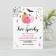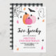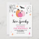 ¡Dos Espeluznantes! Invitación a la fiesta de cumpleaños número 2 de Halloween. Spooktacular cumpleaños bash con calabazas rosas, estrellas y arañas.