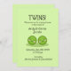 Dos guisantes en una cacerola gemela de una ducha de bebé. fiesta personalizado invita con un lindo diseño personalizado. Forma de corte de personalizable. plantilla de tipografía de bonito. Personalice esta plantilla con RSVP y línea de registro. Color verde o personalizado.