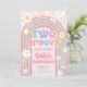 ¡El diseño es para un segundo cumpleaños! Cuenta con un arco iris retro, una tipografía divertida y flores. ¡Una invitación dulce y colorida para la celebración de su segundo cumpleaños! Personalice el texto editable.