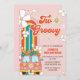 Dos invitaciones al segundo cumpleaños del arcoiris retro Groovy