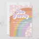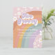 Dos invitaciones de cumpleaños Groovy Retro Rainbow en 2º cumpleaños con margaritas.