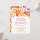 Dos invitación de cumpleaños floral Groovy Retro con flores de estilo de los años 70 y fuentes y colores boho.
