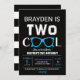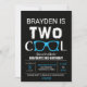 ¿Estás listo para el mejor fiesta del verano? Celebre con estilo esta moderna Invitación a los dos cumpleaños de Guay, perfecta para cualquier fiesta de la piscina de verano, que presenta un diseño clásico en blanco y negro con llamativas gafas de sol azules.
