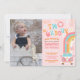 Dos invitaciones Groovy Boho Retro Rainbow a segundo cumpleaños Cara sonriente Groovy una con foto