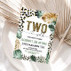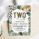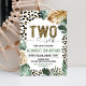 Celebra el gran hito de tu pequeño con esta elegante invitación de cumpleaños con estampado de leopardo "Two Wild". Con tendencias de patrones de safari de la jungla y tipografía chic en tonos dorados, es la forma perfecta de establecer un tono feroz y divertido para una fiesta de segundo cumpleaños. Esta plantilla editable te permite personalizar fácilmente los detalles para un aspecto profesional y de alta calidad que encantará a tus invitados. Haz que la celebración con tema de la jungla de tu pequeño sea inolvidable con este diseño de papelería moderno y aventurero.