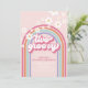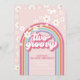 ¡Dos Groovy! Invitación de 2º cumpleaños inspirada en el retro con fuentes y colores de estilo de los años 70, arcoiris y mareas.