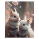 Un poster brillante muy dulce con dos lindos conejos y flores de cerezo.