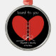 Dos mitades de un corazón atado con un adorno personalizado de cinta.