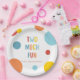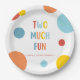Celebra un gran hito con un plato de papel para segundo cumpleaños colorido "Two Much Fun" que establece el tono para una fiesta inolvidable. Elementos de diseño brillantes y coloridos y colores primarios alegres hacen que esta invitación sea perfecta para una celebración alegre del segundo cumpleaños. La tipografía juguetona y la divertida atmósfera de fiesta ayudan a crear emoción en familiares y amigos mientras se reúnen para celebrar que tu pequeño cumple dos años. Ideal para niños o niñas, este diseño moderno y feliz combina perfectamente con pastel, globos y muchas sonrisas. ¡Compra el resto de la colección para obtener productos correspondientes como servilletas, tarjetas de inclusión y más para crear una fiesta cohesionada!