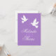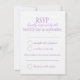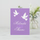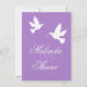 Tarjeta de respuesta de boda simple de doble cara con 2 pájaros de amor / palomas blancas con cintas moradas. Personalice con sus propios detalles.