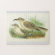 Este diseño de rompecabezas de estilo vintage presenta una representación de dos pájaros en el suelo.