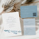 Nuestro diseño de moda costera para bodas de verano, fiestas de compromiso o cenas de ensayo cuenta con un par de peces de color azul acuático. "Dos menos peces en el mar" aparece con elegantes letras azul marino. Personaliza con dos líneas de texto personalizado; se muestra con tus nombres y fecha boda.
