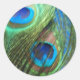 su fotografía azul de plumas de pavo real fue tomada con una lente de ojo de pez. Estas dos plumas tienen un hermoso color y hacen una gran idea de regalo. El fondo azul resalta los colores de los ojos de plumas de pavo real. ¡Pegatinas divertidos!