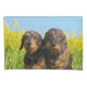 Dos adorables perros de alambre de color jabalí con el pelo adachshund lado a lado frente a las flores amarillas de las flores de las violaciones. Una linda y divertida foto de doggy tomada por Katho Menden. Este acogedor funda de almohadas es una idea de regalo para los amantes de los perros. http://www.zazzle.com/kathom_photo Si estás viendo un diseño que no está disponible en tu producto deseado, por favor no dudes en contactarme a través de mi tienda y crearé el producto para ti lo antes posible.