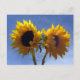Dos girasoles amarillos brillantes contra un cielo azul. Fotografía floral, tomada en la primavera de 2009 en Corralitos, California.