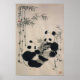 Con una sola tinta negra, el pintor retrata los pandas con una amplia gama de matices. El bambú está pintado alto y recto, con hojas que se balancean y cantan al viento. Chubby y lindo, dos pandas gigantes aquí delineados por el color pálido. Añadidos con tinta oscura en sus ojos, oídos y piernas, los sujetos se caracterizan como pluviales y encantadores. La Twoness siempre tiene un significado propicio en la cultura china; un par de pandas regordetes representa aún más las reuniones, la armonía y la felicidad. Las plantas también tienen buenos significados, como los bambúes que sugieren intergridad. Con estos dos objetos afortunados, esta imagen está llena de buenos deseos.